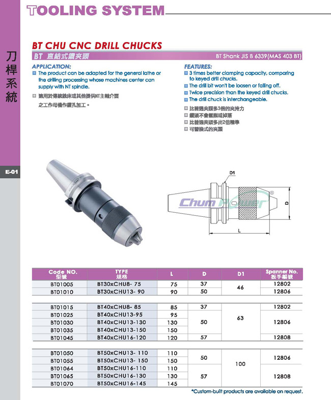 產(chǎn)品名稱: 銓寶鉆夾頭-直截式鉆夾頭刀把BT30BT40BT50